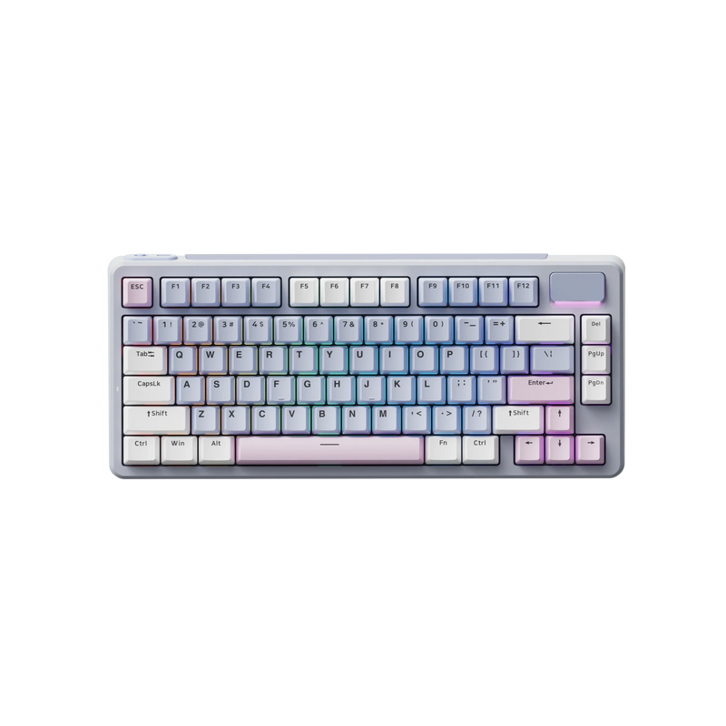 Per key 16.8M RGB lighting allows deep customisation, while the gasket mounted structure ensures smooth, dampened keystrokes with a creamy sound profile. Full N key rollover prevents ghosting, and doubleshot PBT keycaps guarantee durability. FN hotkeys add quick access for media, volume and lighting controls. Compact yet powerful, the V700DIY-75 brings premium feel and competitive performance to every desk.