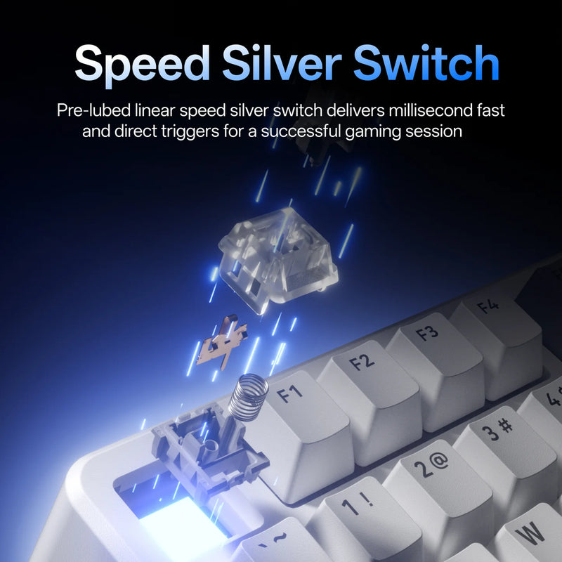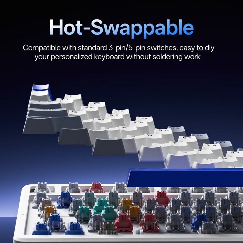 The Rapoo V700DIY-75 is a versatile mechanical keyboard designed for both gaming and productivity. With tri mode connectivity via Bluetooth 5.0, 2.4 GHz wireless or USB wired, you can switch seamlessly across up to three devices. Hot swappable pre lubed speed silver switches deliver fast, linear keystrokes for precise input.