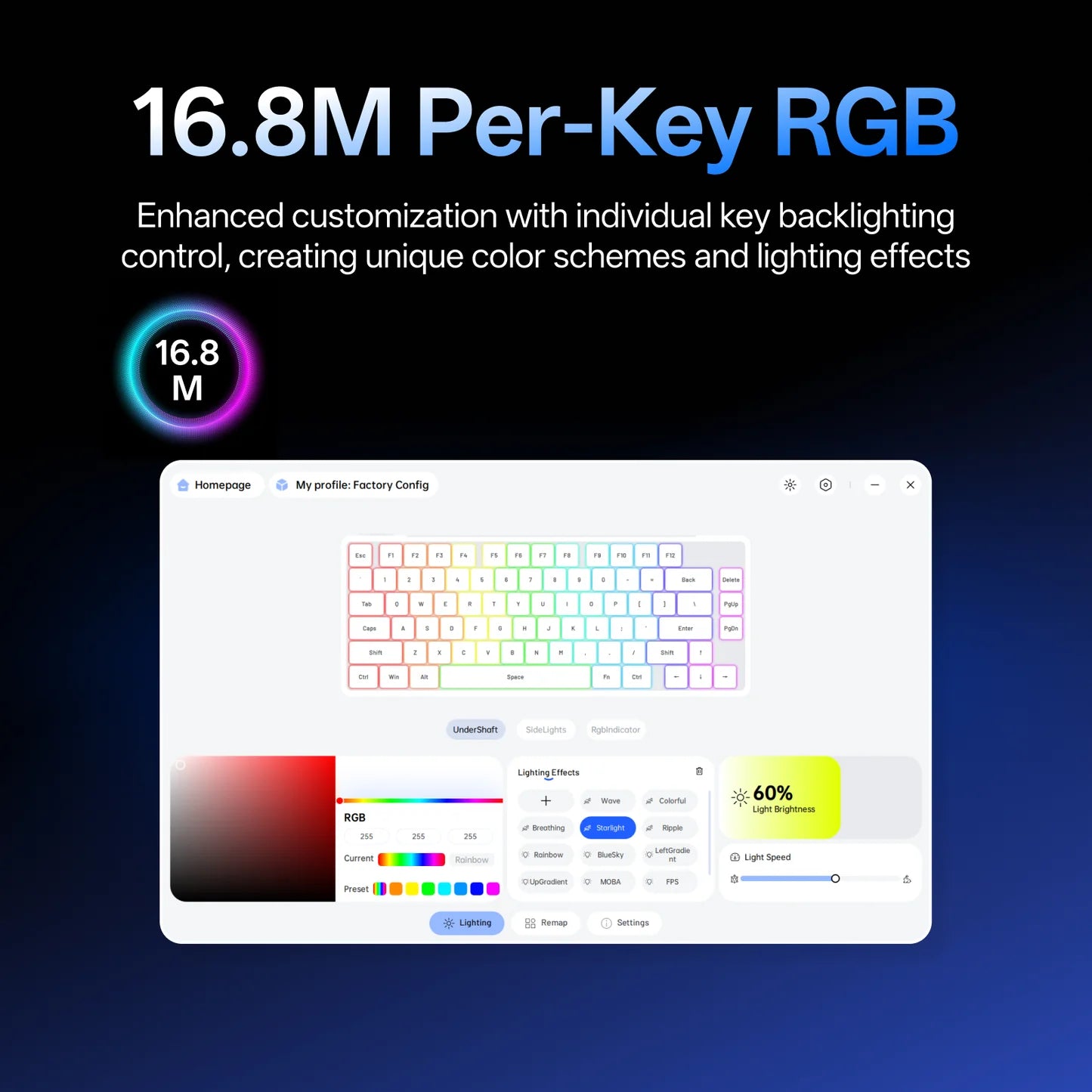 16.8M per key RGB, fully customisable