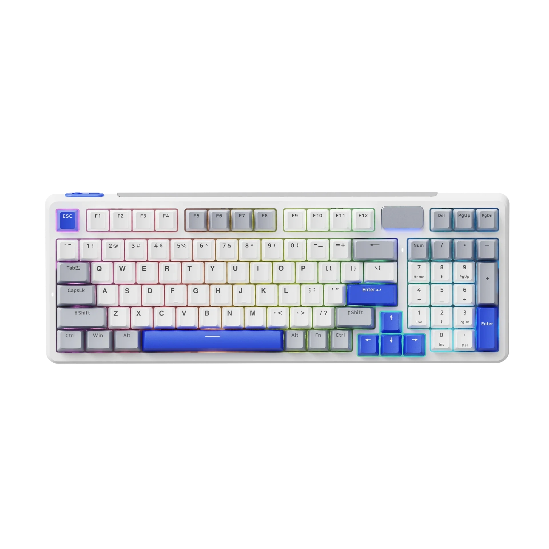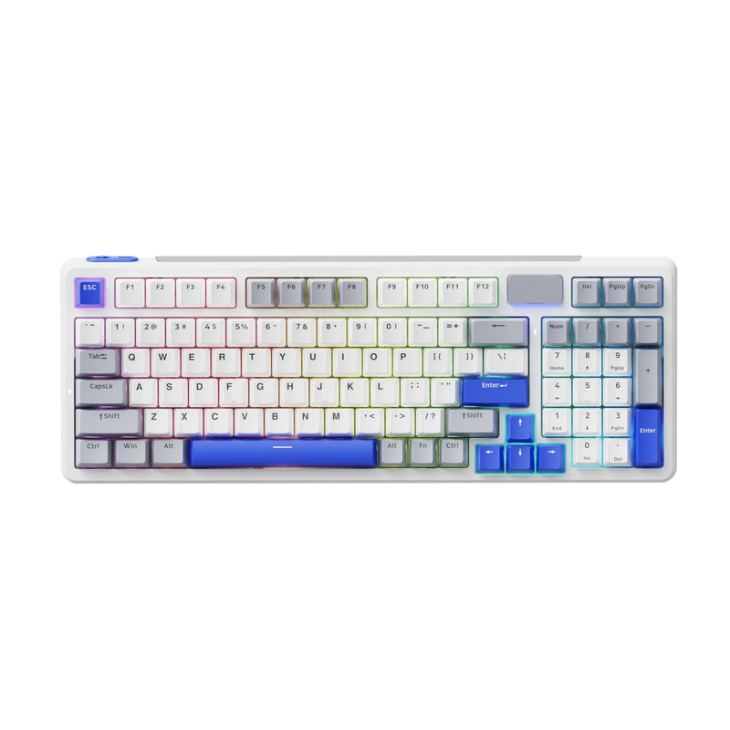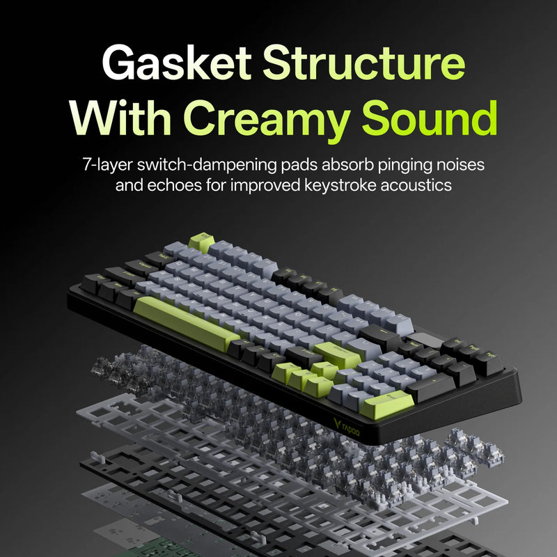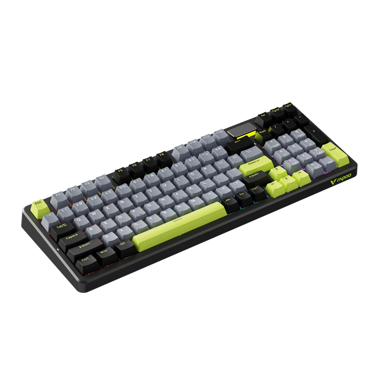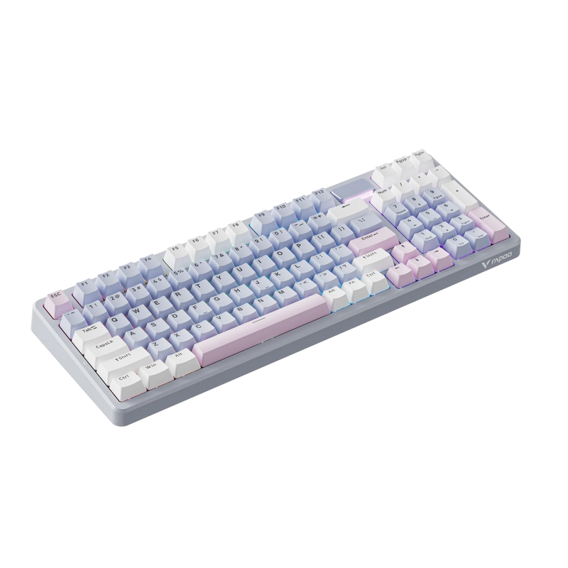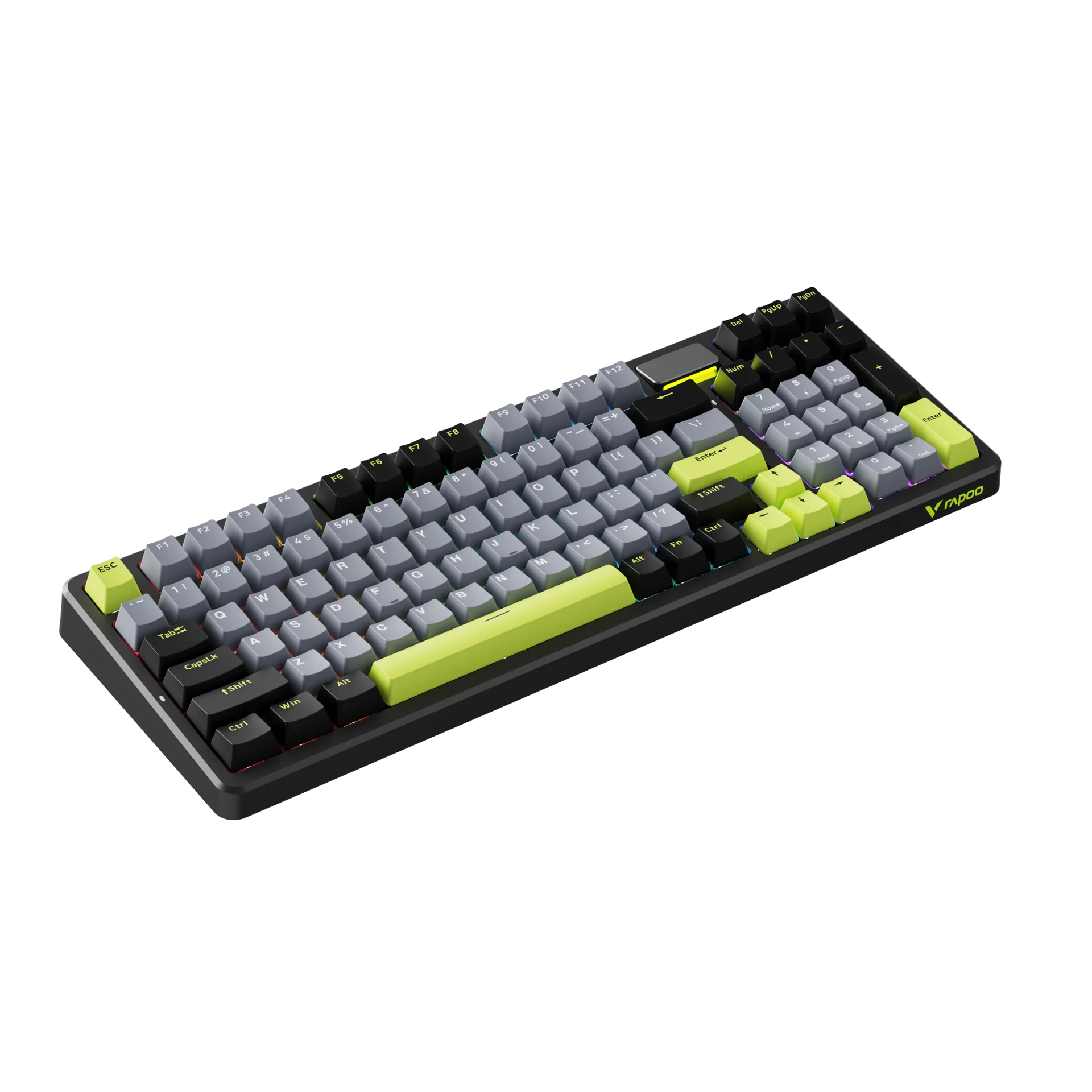Rapoo V700DIY-98. Wireless mechanical gaming keyboard with tri mode connection, hot swappable speed silver switches, 16.8M per key RGB, full NKRO and gasket mounted creamy typing feel.