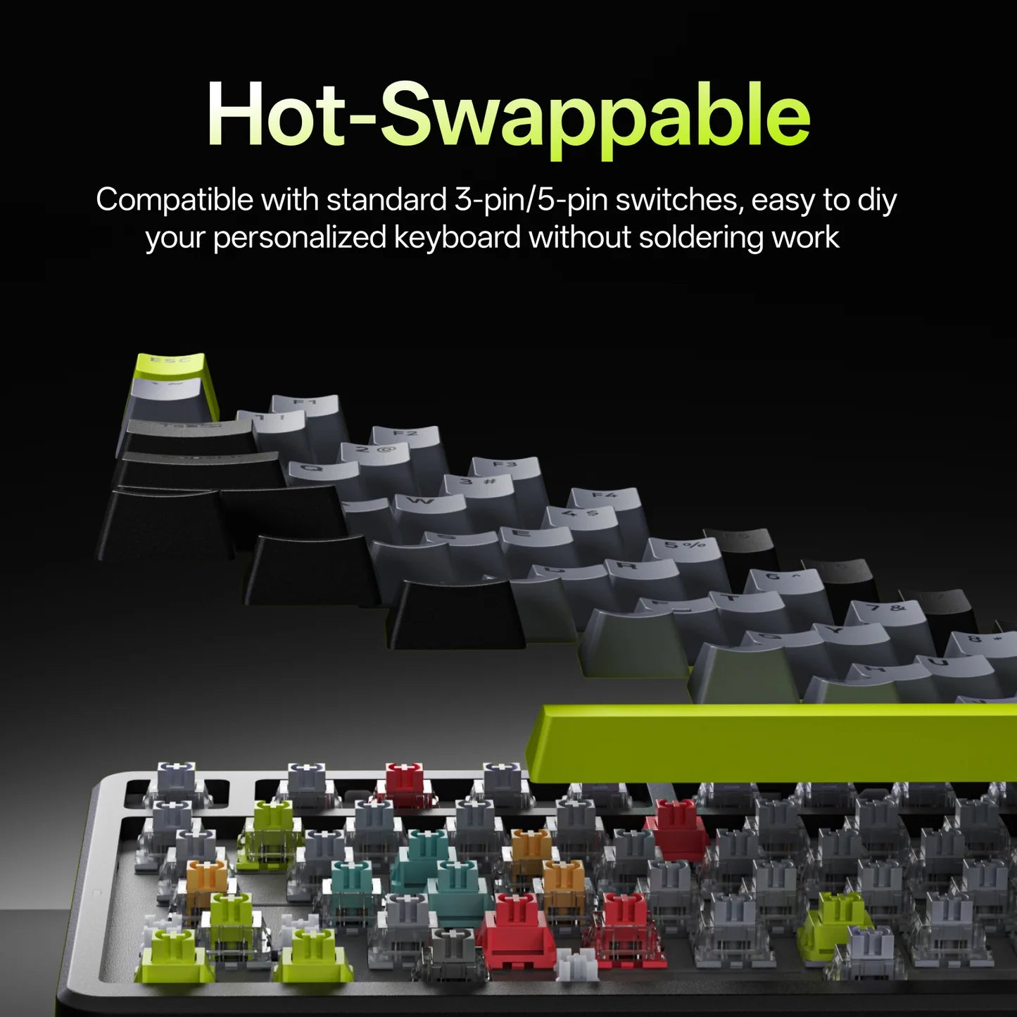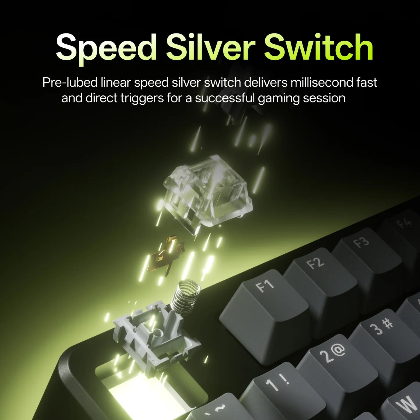 The Rapoo V700DIY-98 is a premium wireless mechanical keyboard built for players who want durability, comfort and performance. Tri mode connectivity via Bluetooth 5.0, 2.4 GHz wireless or USB wired allows seamless switching. Hot swappable pre lubed speed silver switches deliver fast, linear feedback designed for competitive play.